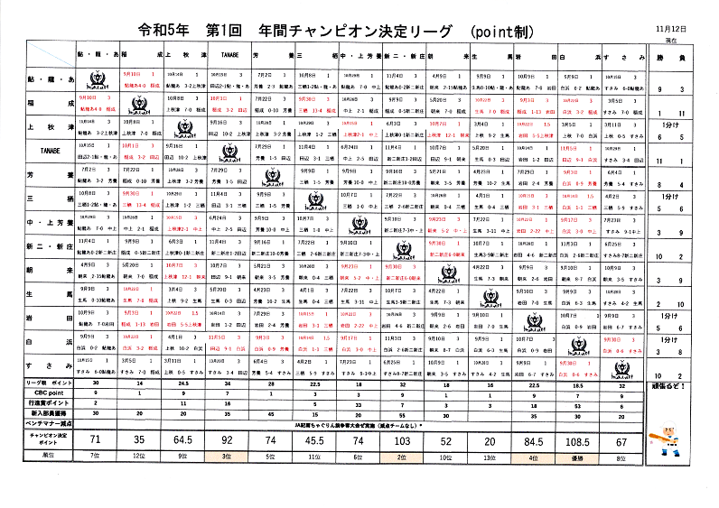 令和6年度 年間チャンピオン決定リーグ大会結果