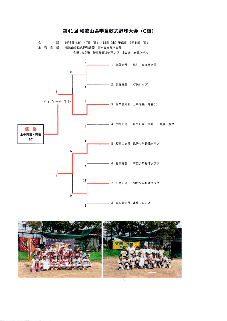 優勝 上中芳養・芳養BC  準優勝 紀伊少年野球クラブ
