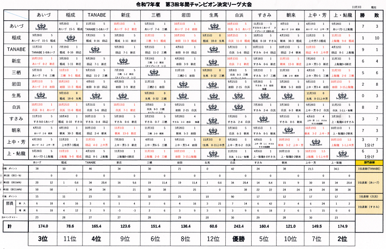 令和7年度 年間チャンピオン決定リーグ結果